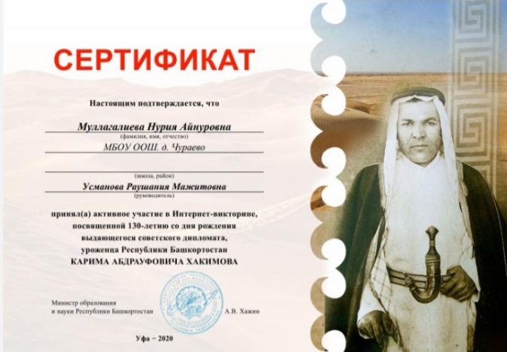 Интернет – викторина, посвященная 130-летию со дня рождения К.А.Хакимова